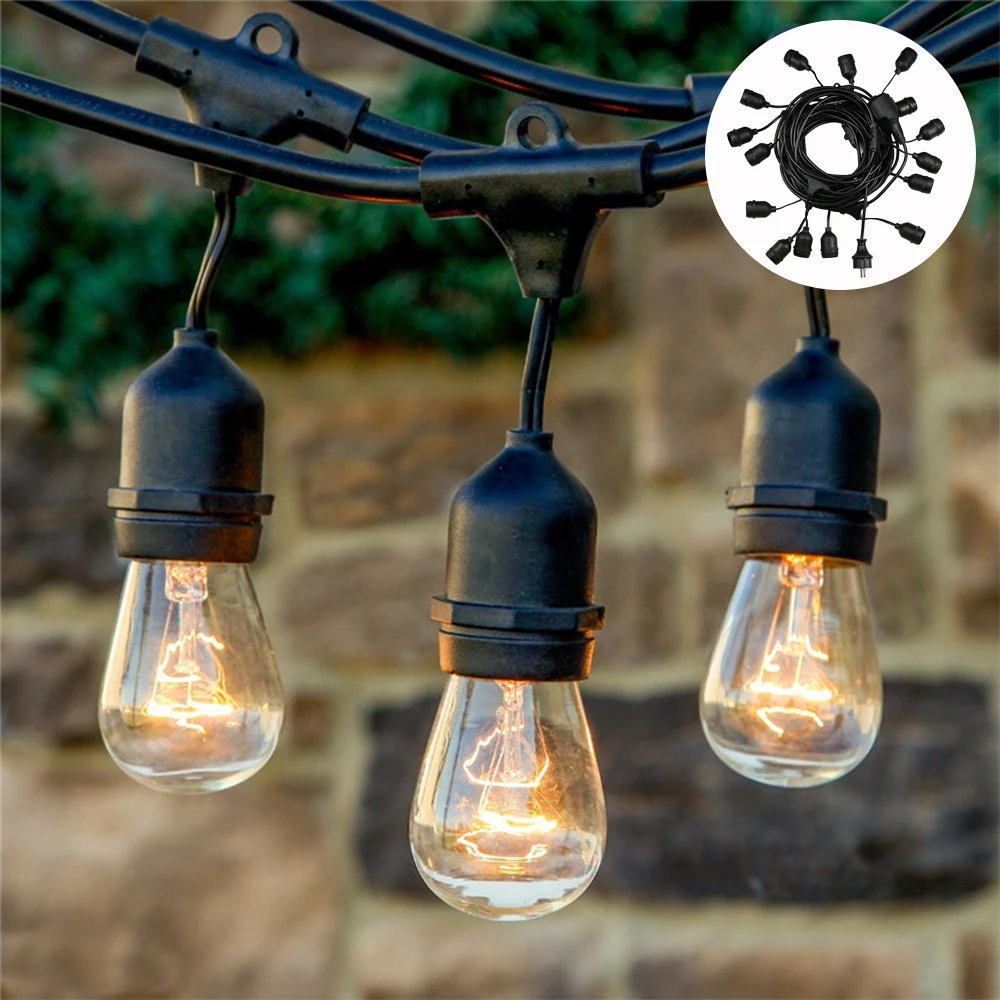 BEST 7M Commercial Grade LED String Lights Outdoor Hanging Hood S14 LED Retro Edison Filament Bulb Weddi