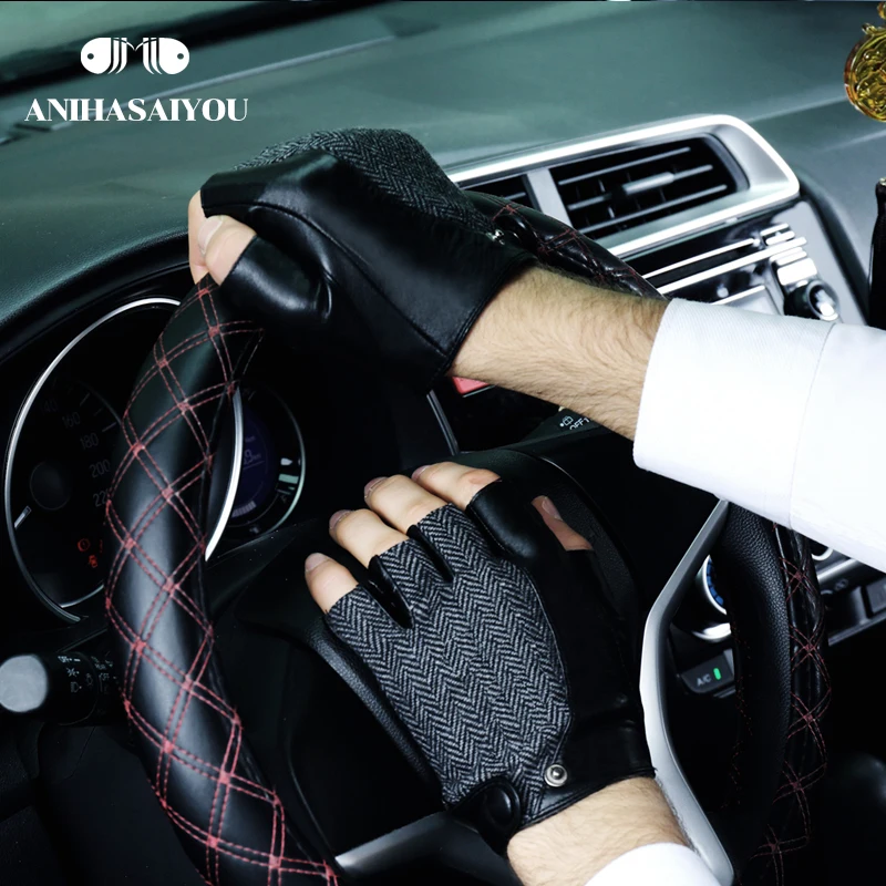 HIGH QUALITY Fashion Leather mens leather gloves outdoor sports locomotives leather gloves driving thin section