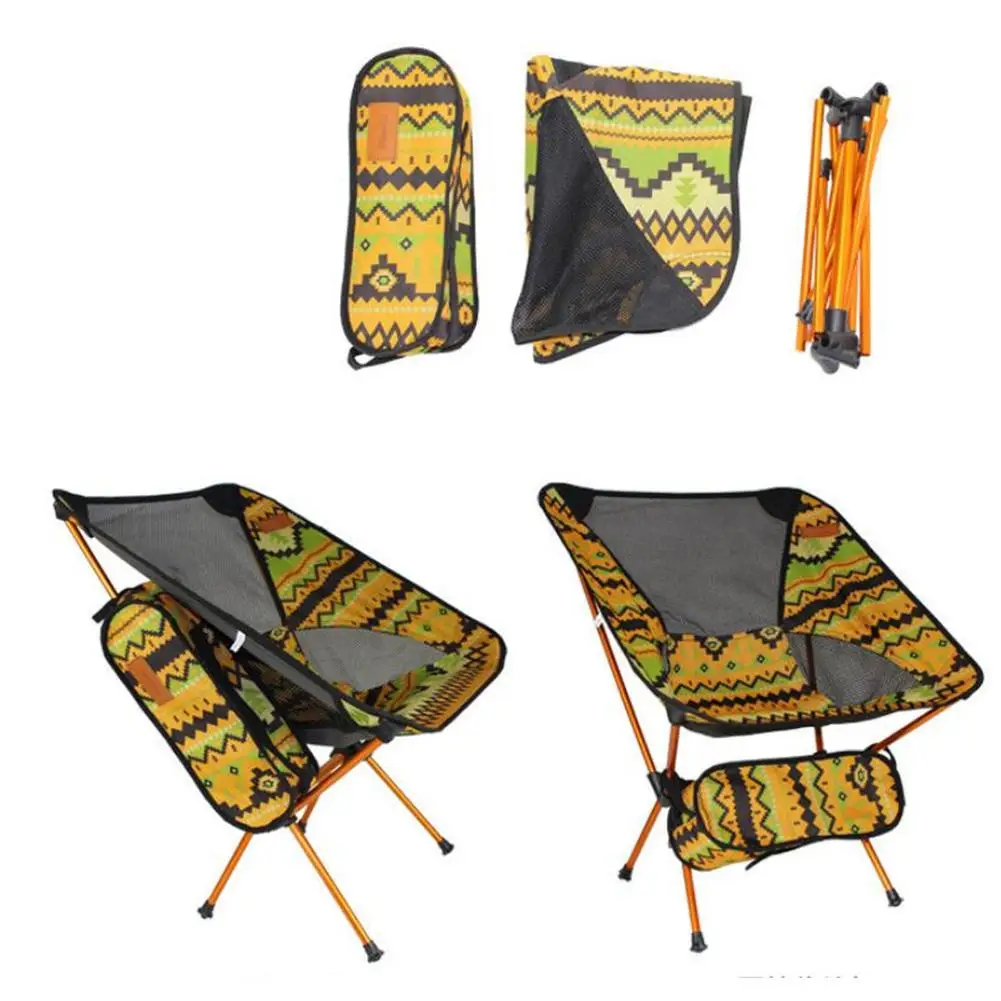 BEST HiMISS Outdoor Foldable Chair Printing Pattern Aluminum Alloy Ultra-light Portable Fishing Chair Av